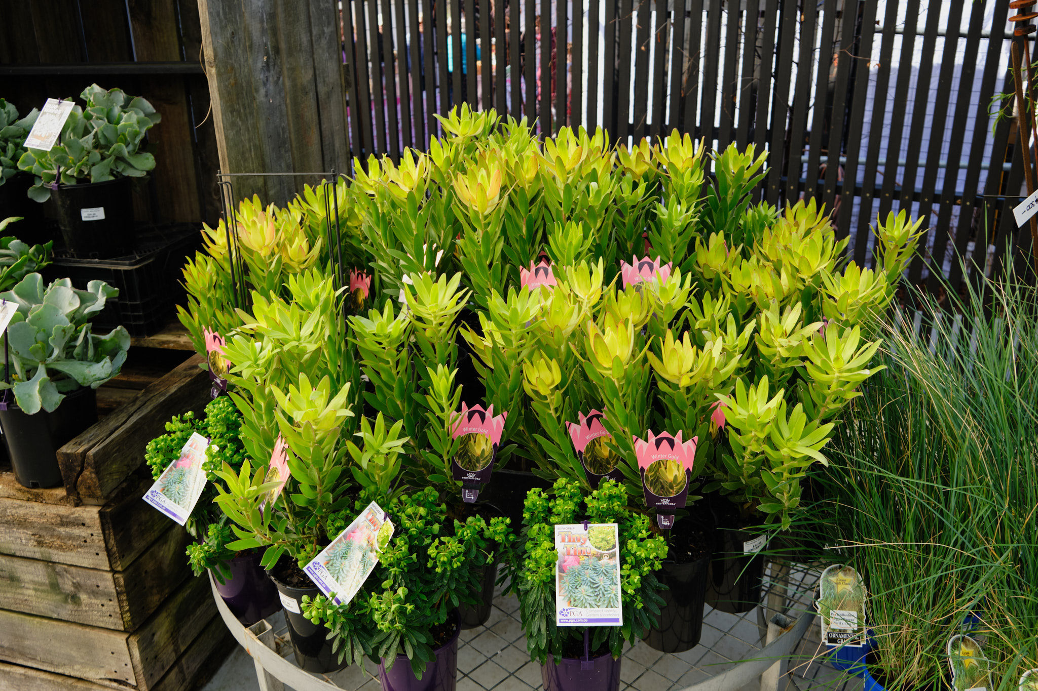 And one of the real highlights of the season — Leucadendron and Protea — are just starting to arrive, with benches set to fill over the coming weeks. These are the backbone of a striking, low-maintenance garden, bringing structure, colour, and incredible texture right through the cooler months and beyond.